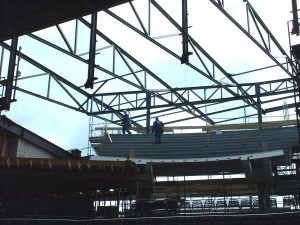 Stahlgestell mit vertikal verfahrbaren Ebenen über Spindelhubgetriebe bzw. Hubzylinder